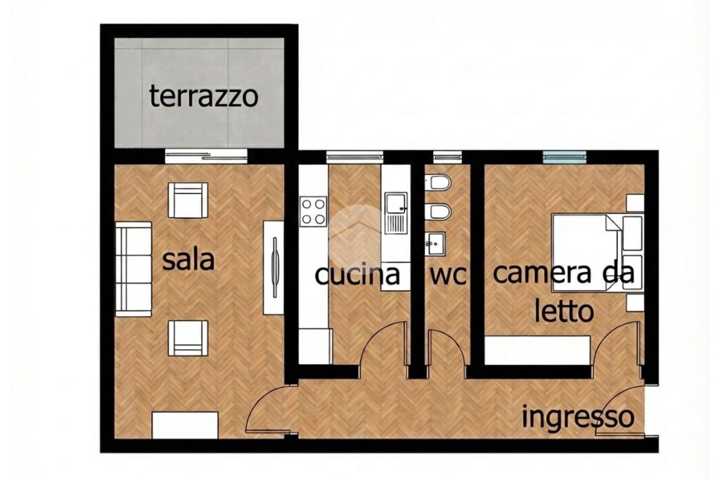 L'appartamento gode di una pianta classica e funzionale, dove ogni ambiente è ben separato:
