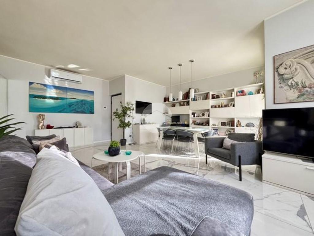 La ristrutturazione ha interessato integralmente l’appartamento: impianti certificati, infissi ad alte prestazioni, nuove pavimentazioni e soluzioni tecniche pensate per valorizzare gli spazi.